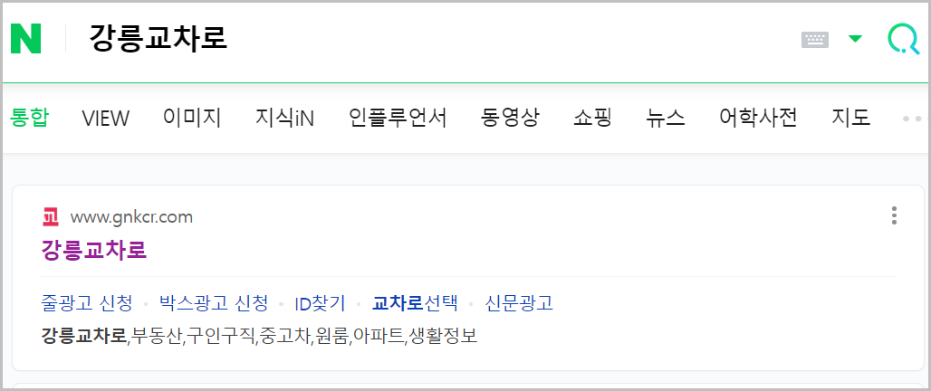 강릉교차로 부동산 홈페이지를 들어가기 위해서는 네이버 다음과 같은 우리나라 대표 포털을 통해서 들어가시면 됩니다. 간단하게 '강릉교차로'라고 검색을 하시면 들어가실 수 있습니다.