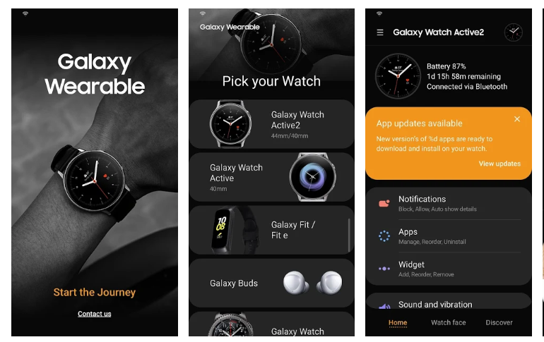 여기로 들어가면 갤럭시 워치를 위한 여러가지 기능이 있습니다. 이곳에서 워치 어플리케이션을 다운로드 할 수 있는 갤럭시 스토어로 들어가실 수 있습니다.