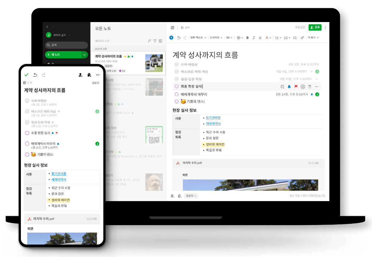 메모장의 대명사입니다. 동기화 기능도 충분하고, 프리 버전도 많은 기능을 가지고 있습니다. 컴퓨터 어플도 괜찮고, 스마트폰 어플도 훌륭합니다. 비용을 지불하면 더 많은 기능을 포함할 수 있습니다.