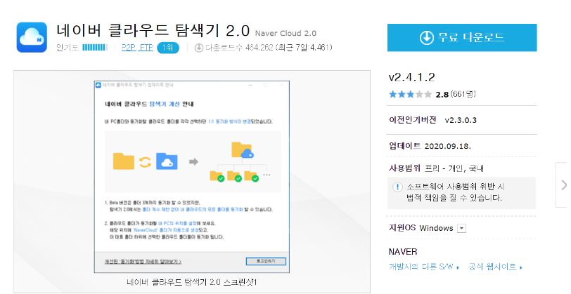 예전에는 네이버 소프트웨어에서 네이버 클라우드 탐색기 2.0을 다운로드 할 수 있었습니다. 하지만 지금은 해당 서비스가 종료가 되어서 더이상 이러한 방식의 다운로드는 불가능합니다.