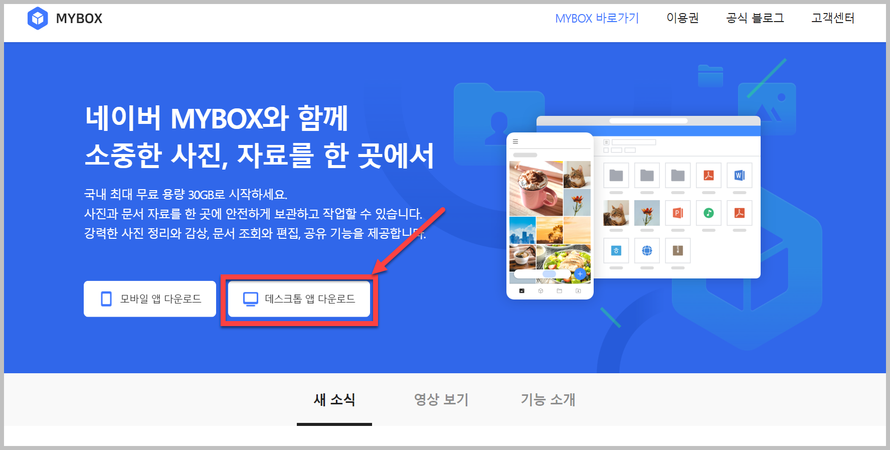 위 링크를 클릭하시면 네이버 마이박스 홈페이지로 들어가실 수 있씁니다.