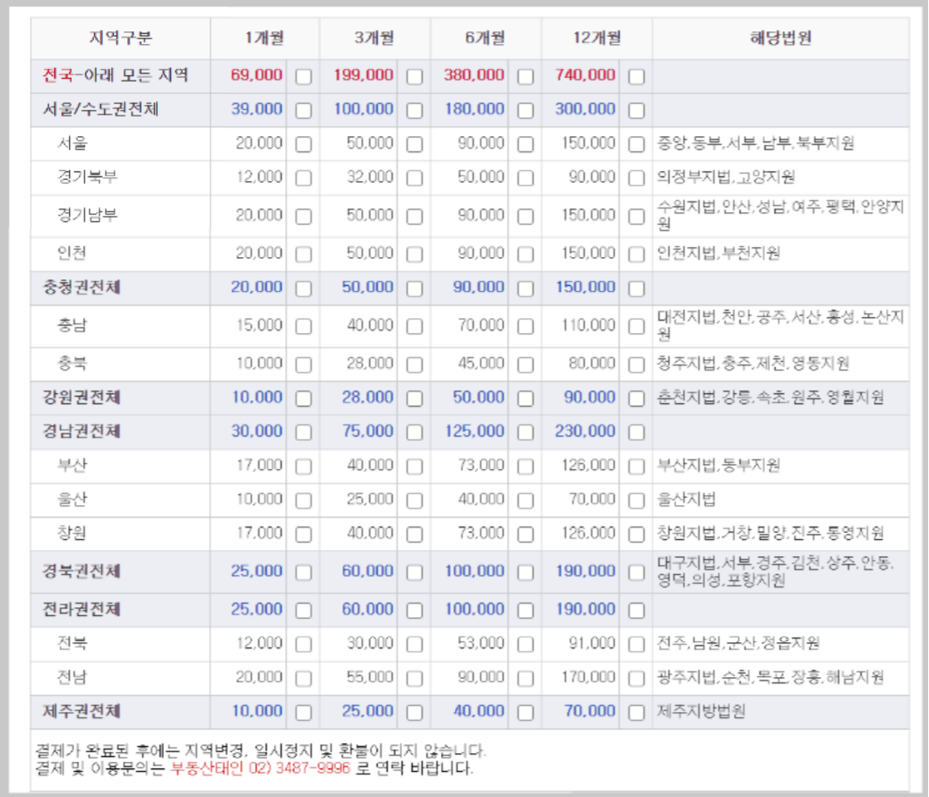 제한 없이 사용을 하고 싶은 사람은 유료로 가입을 할 수도 있습니다. 가격은 다른 곳과 비슷한 가격이라고 할 수 있을것 같아요. 법원에 따라서 볼수도 있고, 전국 모두를 볼 수 있습니다. 다른곳과 마찬가지로 만만한 수준의 가격은 아닙니다. 단지 공부를 하기위하여 가입을 하는것은 조금 부담스러운 가격이네요.