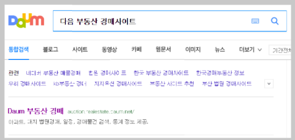 다음 부동산 경매 사이트에 들어가기 위해서는 포털에서 "다음 부동산 경매사이트"라고 검색을 해야만 들어갈 수 있습니다. 이 사이트에 들어가는게 꽤나 힘이 들더라구요. 다른것은 대강 검색을해도 잘 나오는데 말이지요.