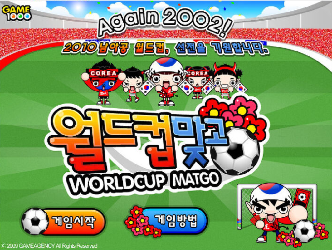 위 링크를 들어가면 월드컵맞고라는 것을 다운로드 할 수 있습니다. 컴퓨터와 1:1 대전을 할 수 있는 게임이지요. 보시면 알겠지만 2002 월드컵 맞고인것을 보면 무려 20년전에 개발된 프로그램임을 알 수 있습니다. 요즘에는 이러한것이 개발이 되지는 않는것 같아요.