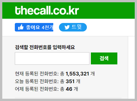 두번째는 더콜 사이트입니다. 위 사이트는 연락처를 입력하면 어떤 스팸전화인지도 알 수 있습니다. 예를 들면 피싱사기문자, 보험광고, 부동산 분양광고 인지를 파악할 수 있습니다.