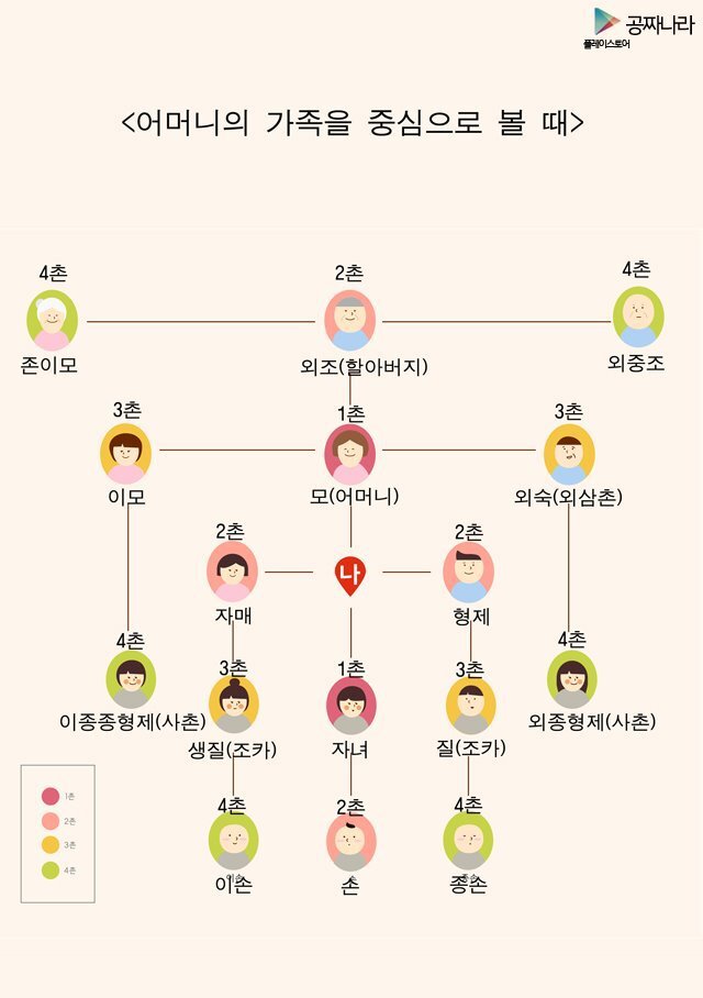 오늘은 가족 호칭과 촌수에 대해 알아보려고 합니다. 촌수 가계도는 종종 혼란스러울 수 있습니다. 우선, 촌수는 친척 간의 멀고 가까운 정도를 나타내는 숫자 체계입니다. 부모와 자녀 사이는 1촌이며, 형제 자매는 2촌입니다. 촌수를 계산할 때는 가계도를 그려서 쉽게 확인할 수 있습니다.
