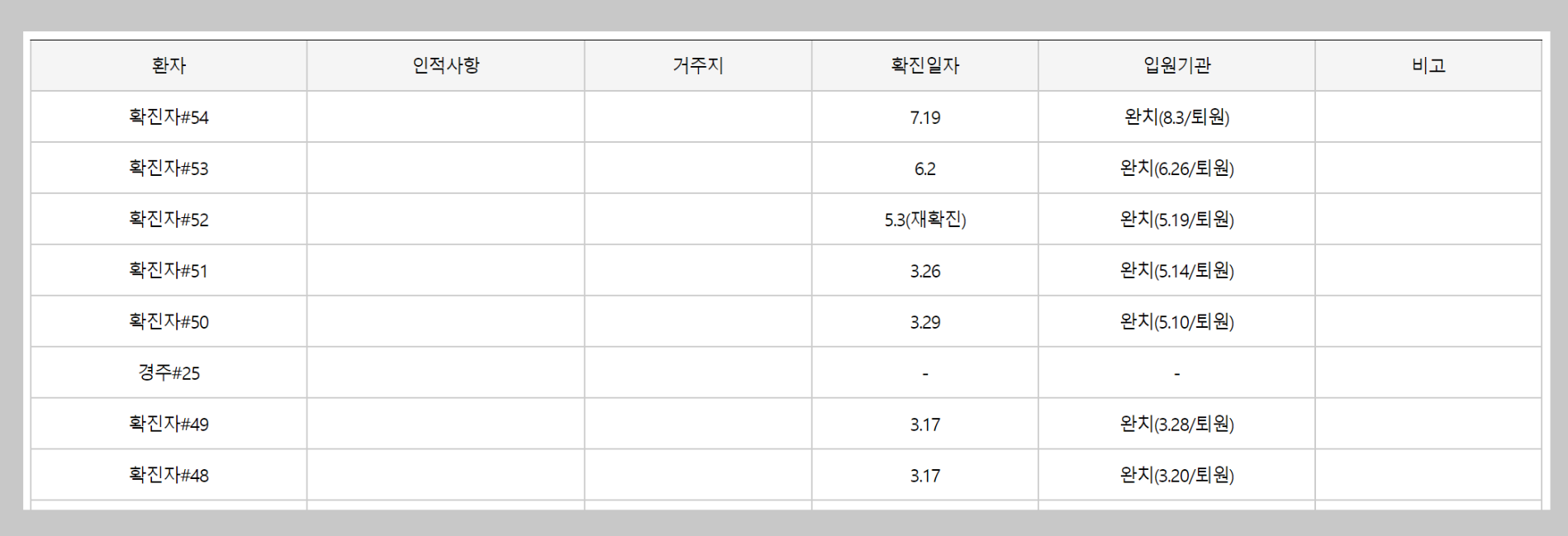 현재 확진자 이동경로는 나와있지 않습니다. 이미 접촉자를 다 확인 했기 때문에 더이상 공개할 이유가 없는것이지요. 개인정보 보호를 위하여 이렇게 하는것 같아요.