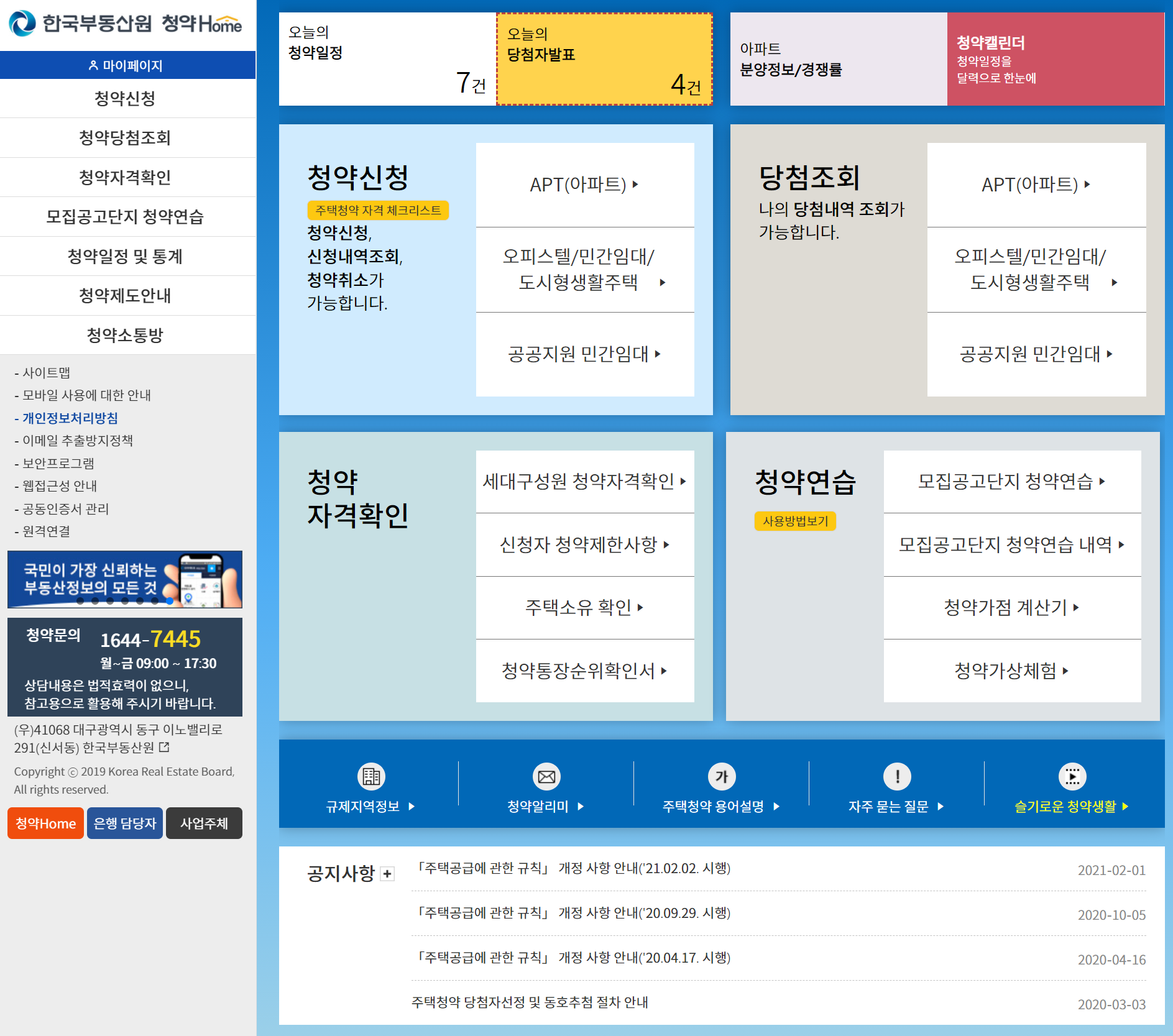 한국감정원 청약홈 홈페이지